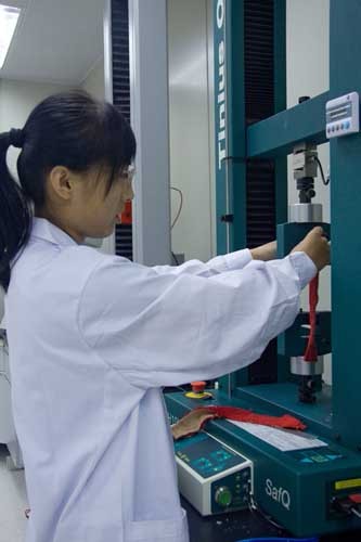 技術(shù)中心設(shè)置了綜合實(shí)驗(yàn)室、化學(xué)實(shí)驗(yàn)室等檢測(cè)實(shí)驗(yàn)室,可進(jìn)行包括甲醛含量、可分解芳香胺、可萃取重金屬、織物阻燃性能、織物外觀測(cè)試、線圈強(qiáng)力及各種牢度等80多個(gè)項(xiàng)目。2009年,技術(shù)中心實(shí)驗(yàn)室通過(guò)了國(guó)際知名企業(yè)—迪卡儂公司的國(guó)際實(shí)驗(yàn)室認(rèn)證,2010年通過(guò)了國(guó)家實(shí)驗(yàn)室認(rèn)證審核。