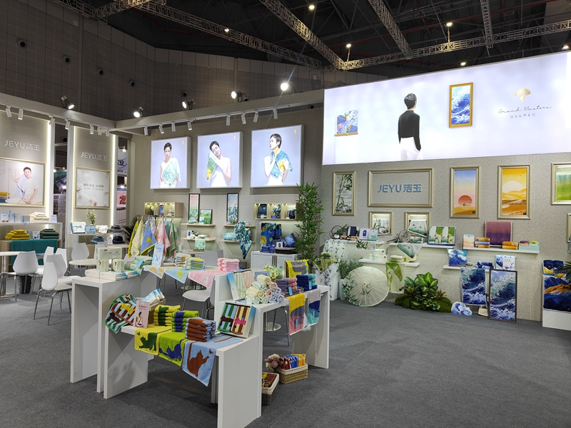潔玉攜大師系列與Keep聯(lián)名款毛巾亮相2025上海家紡展