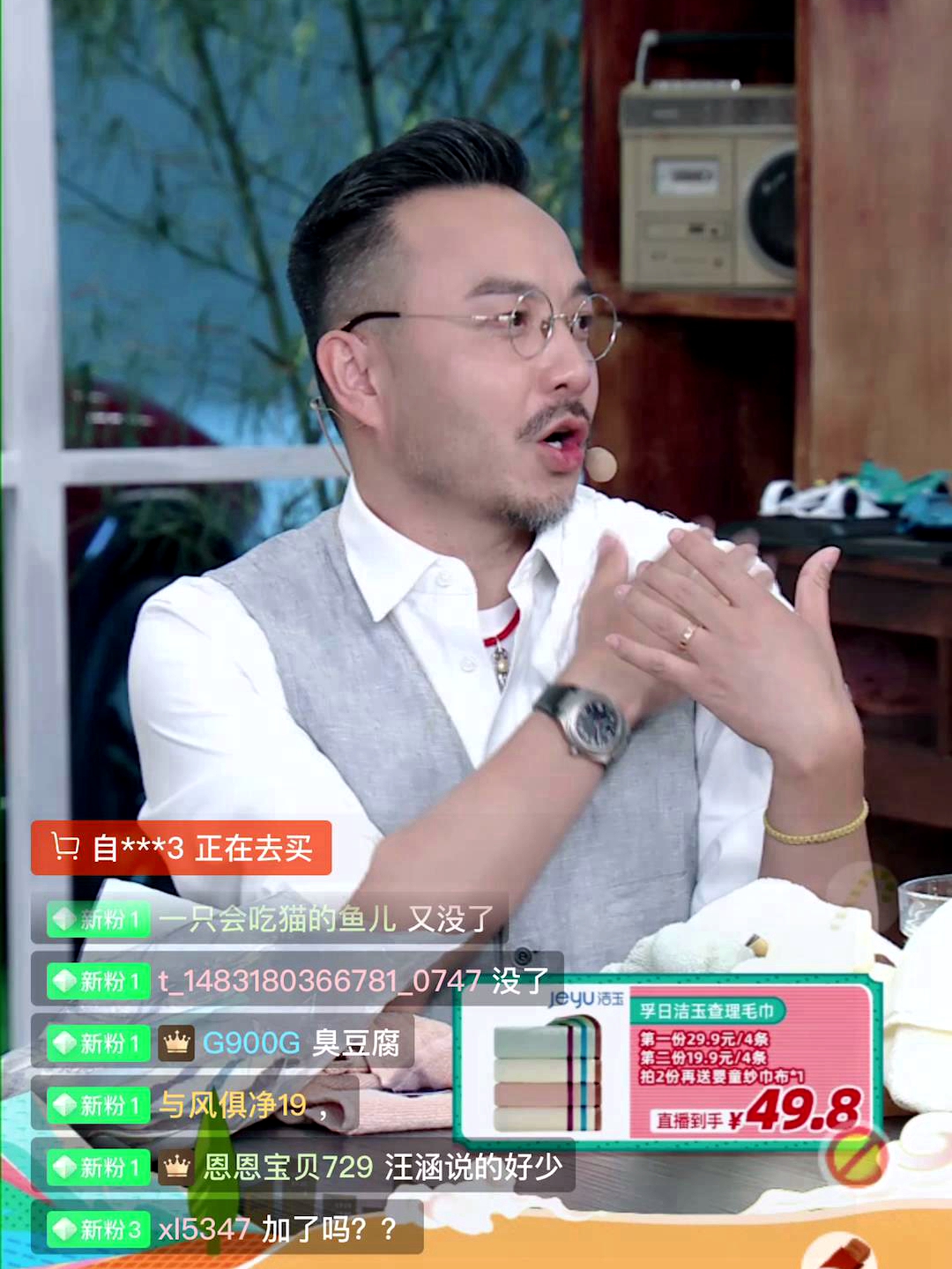 隨后汪涵終于恢復知性本色,談起了毛巾的文化淵源。他說,國人使用毛巾類制品的時間是非常悠久的,可追溯到秦漢時期。從方言帕、帕子,頭腦風暴手絹、手巾、直到羽扇綸巾……這時候,助理的一聲驚呼汪涵瞪圓了眼睛:上線的五千組毛巾已經賣了!是的,還沒到價格介紹環節,就已經被熱情的觀眾搶購一空。吳總現場拍板決定追加一萬組,這樣的一再追加最后到了表態“只要買,就加”,這份基于強大生產能力的豪氣贏得了汪涵雙手點贊