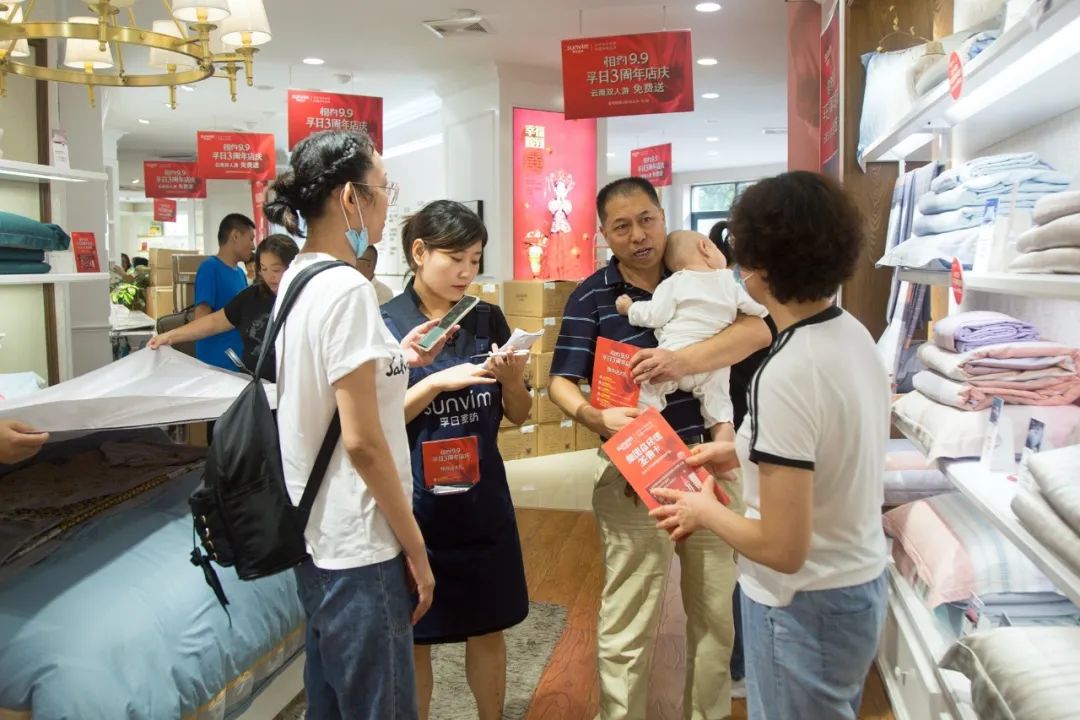 “吳總,這已經(jīng)是第六支馬克筆了?!眳敲鼬P總經(jīng)理的現(xiàn)場簽售,將孚日家紡“相約9.9”系列店慶活動推向高潮?!敖鹁陪y十”正值家紡產(chǎn)品銷售旺季,孚日家紡適時推出新品推介和優(yōu)惠酬賓滿足消費者對美好生活的需求。