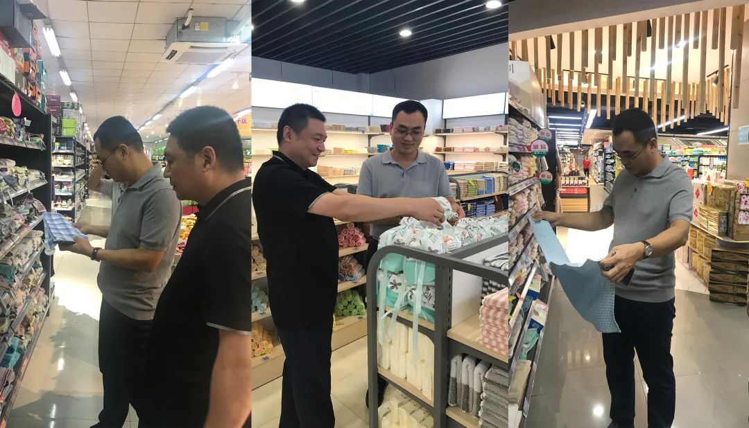 在第二站江蘇鹽城,肖董事長一行考察了鹽城超市系統,了解潔玉毛巾鋪面情況。鹽城市場整體效果不錯,銷售狀況良好。肖董事長參觀了代理商新建展廳,交流市場現狀及產品周轉情況。在接下來的南通,肖董事長考察了超市賣場,拜訪了重要客戶。在蘇州和嘉興,肖董事長考察發現,在沃爾瑪等賣場潔玉毛巾占比逐漸提升。